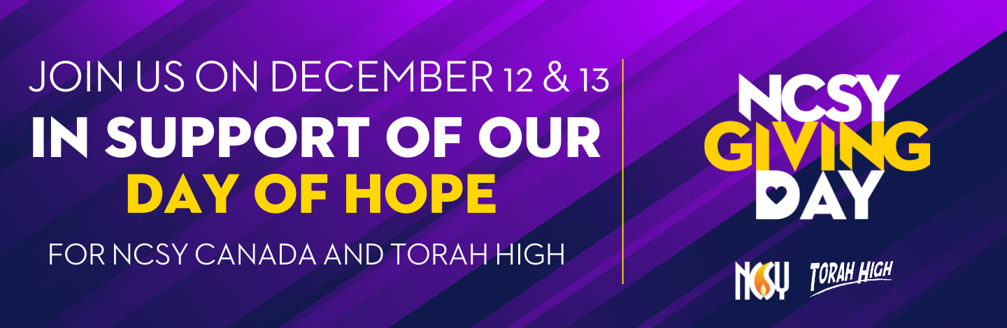 Join hundreds of families in support of NCSY Canada and Torah High on this Day of Hope. After a long year that we have weathered together, we are filled with a sense of hope as we look toward a brighter, more hopeful future, as we began to roll out more in-person programming once again. Shabbatons, Learn and Earn, Getaways, and more…. we are ready for face-to-face programs that will inspire our teens as never before.