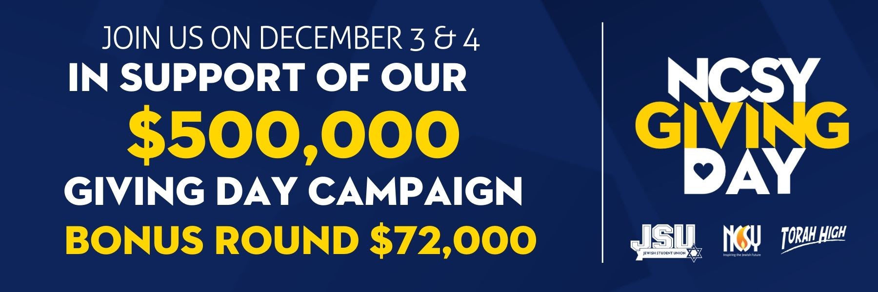 DOUBLE your impact on the NCSY Giving Day. Every contribution is magnified through the generosity of committed donors who will match your donation.