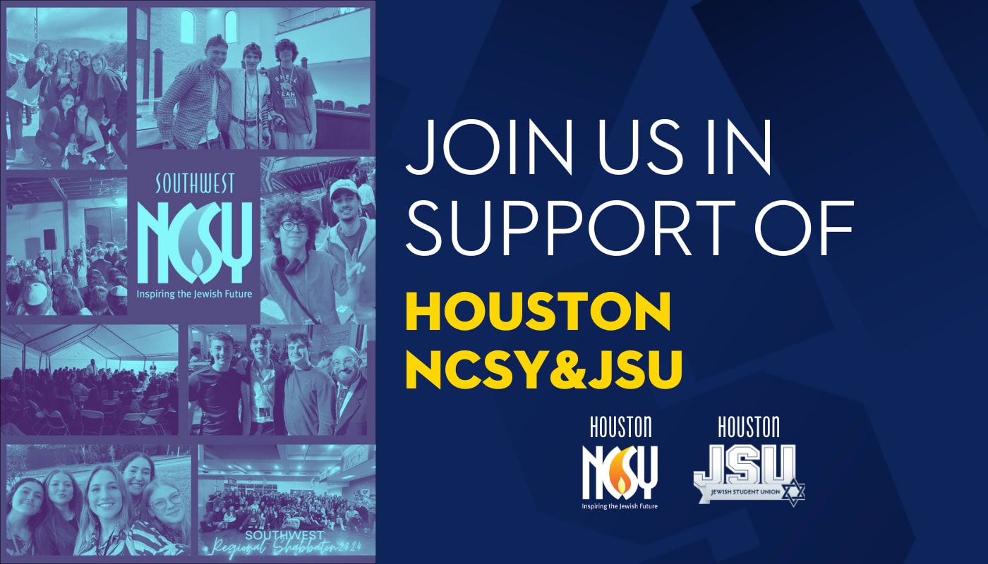 Join us in this decisive moment for Houston NCSY and JSU. Together, we have the power to make a significant difference in the lives of our youth, empowering them to face hatred with love, misunderstanding with clarity, and their challenges with an unbreakable sense of pride in their heritage.